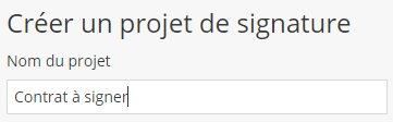 Donnez un nom à votre projet de signature en remplissant le champ Nom du projet. C’est ce nom qui sera communiqué à vos signataires et qui s’affichera dans le tableau de bord.