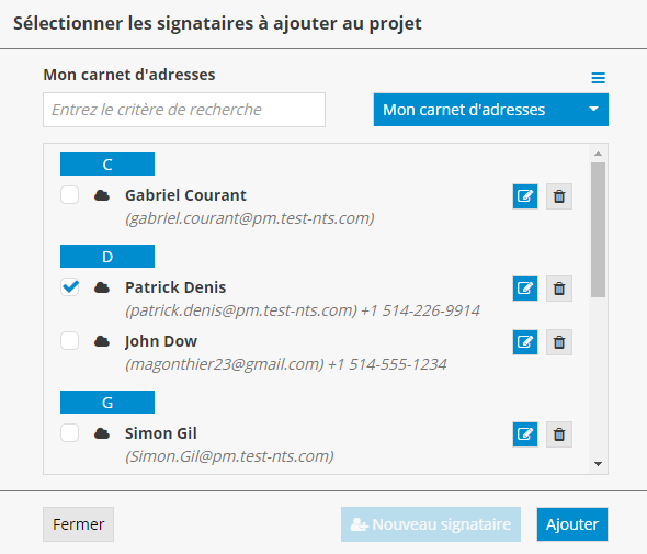 Une fois le ou les signataires sélectionnés, cliquez sur Ajouter.