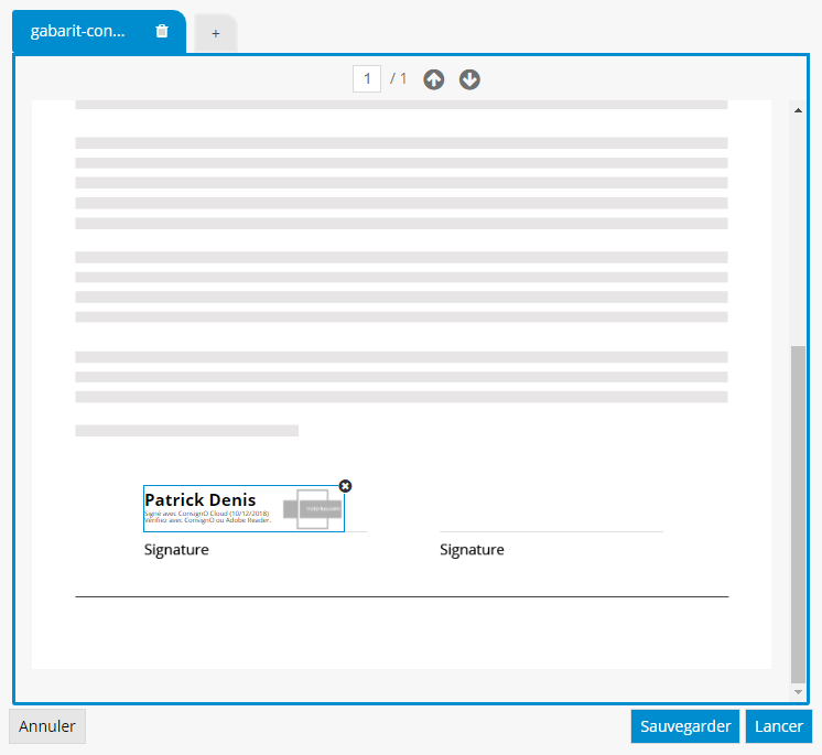 Remarque : La couleur bleue sur la zone de signature indique qu’il s’agit d’une zone à signer.