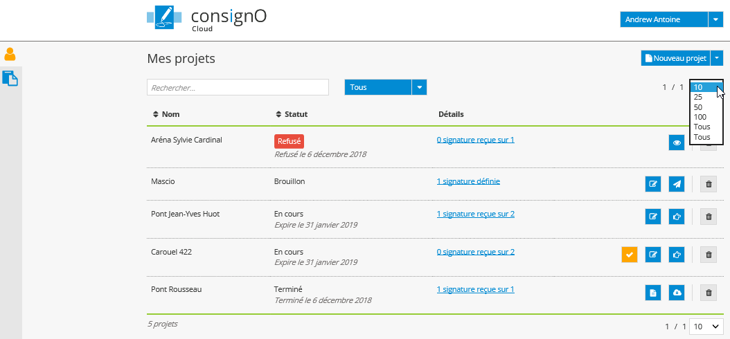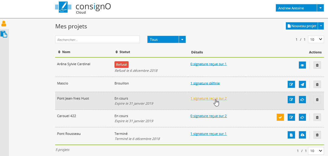 - Expiré – Le projet de signature a atteint sa date d’expiration, et au moins un signataire n’a pas signé.
