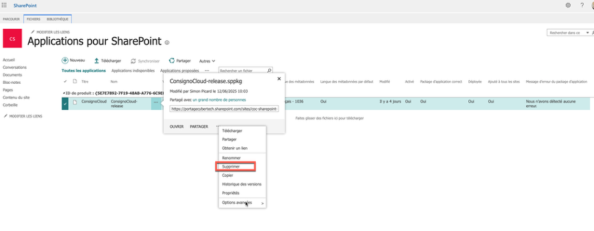 3. Guide pratique de gestion et de dépannageIl peut arriver que certaines configurations soient perdues lors des mises à jour de ConsignO Cloud ou SharePoint. Voici quelques conseils de dépannage.
