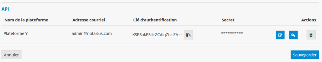 Vous resterez toutefois en mesure de modifier le nom de la plateforme et l’adresse de courriel associée en cliquant sur l’icône du crayon.