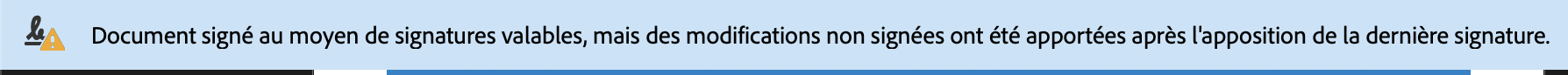 Un document signé numériquement peut être annoté ou commenté, cela n’affectera pas la validité du document ou votre signature, mais affichera un message indiquant un changement sur le PDF: