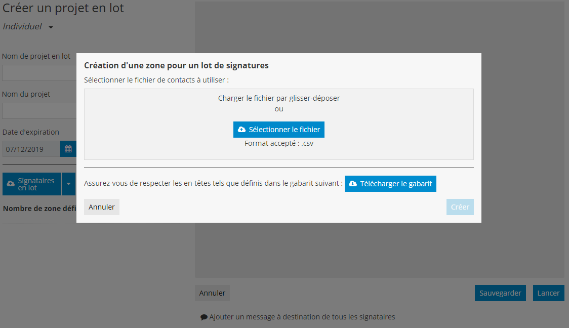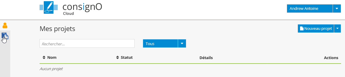 Une page vous permettant de créer un projet de signature vous sera alors présentée :