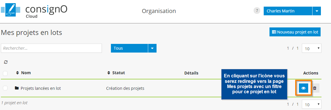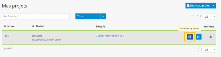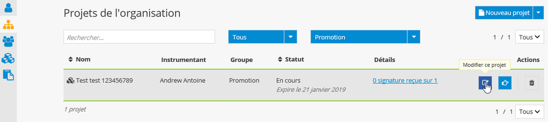 Se rendre sur le tableau de bord de l’instrumentant et cliquer sur le bouton « Signer ce projet en personne ».
