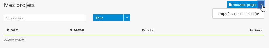 Depuis le tableau de bord, cliquez sur Nouveau projet