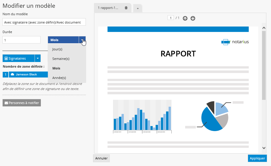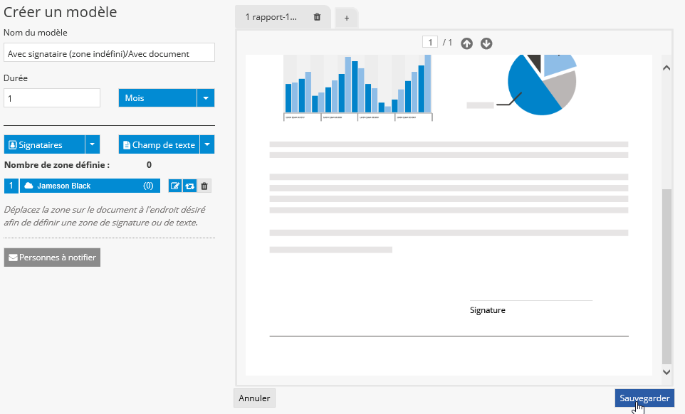 Pour définir un nouveau signataire et choisir le type de signature requis, cliquez sur Nouveau signataire (voir comment ajouter un nouveau signataire à son carnet d'adresses)