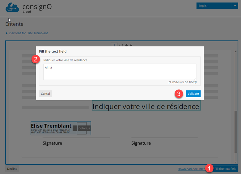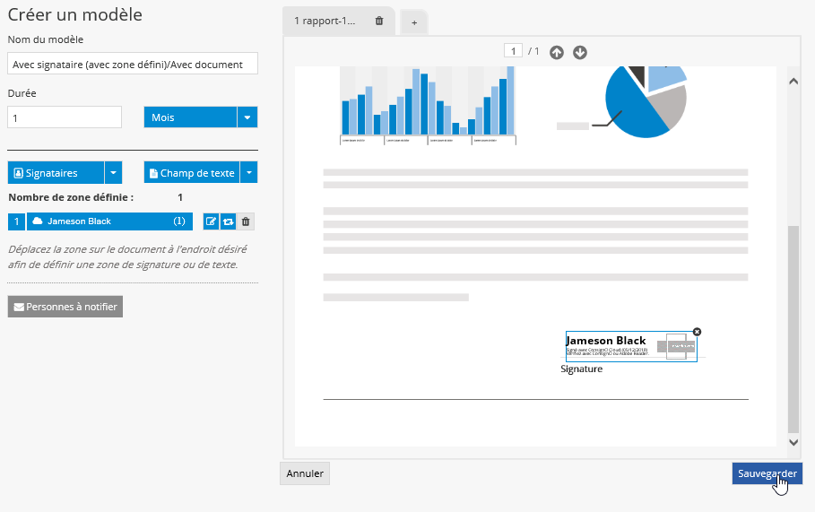 Remarque : La couleur bleue sur la zone de signature indique qu’il s’agit d’une zone à signer.