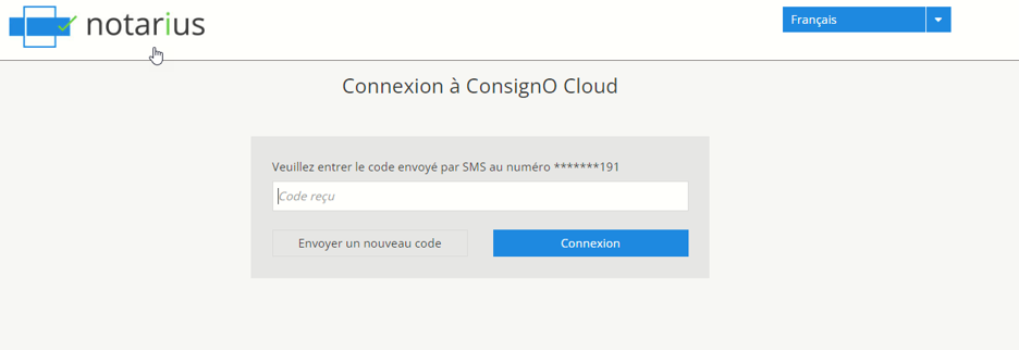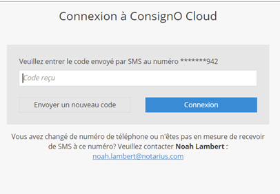 - SMS : En cliquant sur le lien du projet de signature, le signataire recevra par texto un code qu’il devra entrer sur la page de connexion.