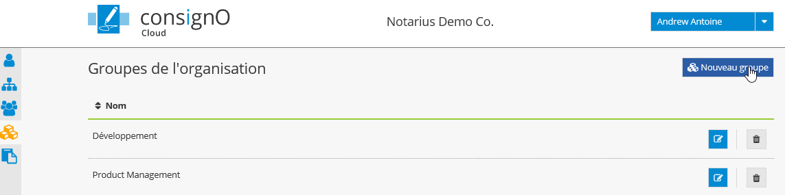 - Cliquez sur le bouton Nouveau afin d'ajouter un signataire à votre carnet d'adresses.