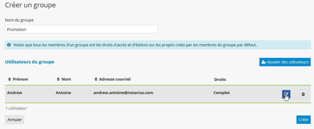 Astuce : Actuellement, le groupe de destinataires n’est pas enregistré dans le carnet d’adresses pour une réutilisation facile sans avoir à le recréer. Vous pouvez éviter cette étape en dupliquant ce projet directement depuis le tableau de bord et ainsi réutiliser le groupe de destinataires.