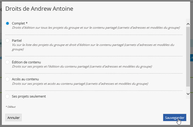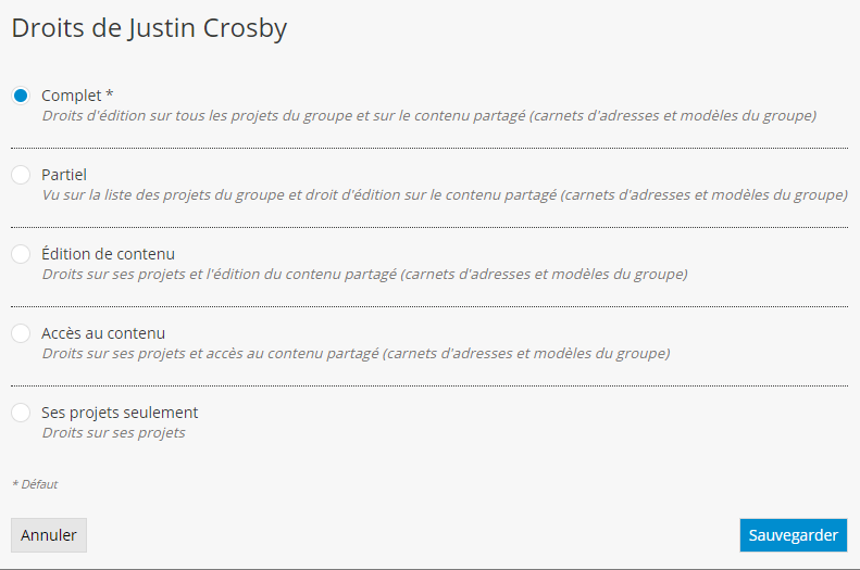 * Les valeurs par défaut peuvent être différentes si votre organisation a défini ses propres valeurs par défaut.