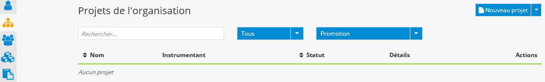 Pour démarrer, dirigez-vous sur le tableau de bord Mes projets ou Projets de l’organisation en le sélectionnant à partir de la barre latérale gauche mentionnée dans l’image ci-dessous.