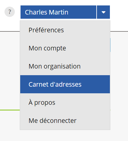 - Dans votre tableau de bord, cliquez sur la flèche du menu déroulant à droite de votre nom, puis sélectionnez Carnet d'adresses.