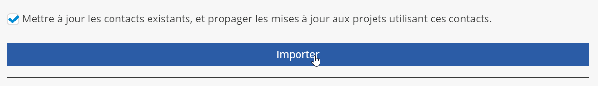 - Le bouton est dynamique et sera différent en fonction de l’existence ou pas de contacts dans le carnet d’adresses et de projets avec ces contacts