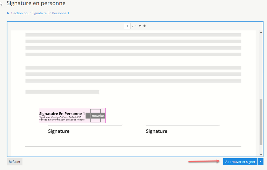 Le signataire doit cliquer sur « approuver et signer » pour signer le document.
